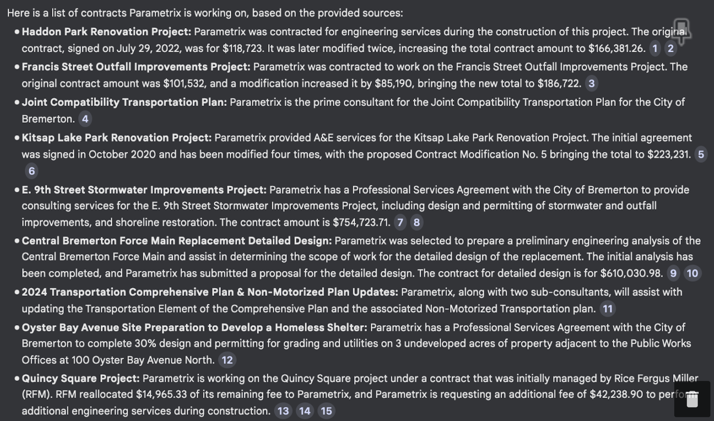 The city continues to rely on expensive contractors like Seattle-based Parametrix. Parametrix is currently working on no fewer than 7 city contracts, totaling more than $3 million.
