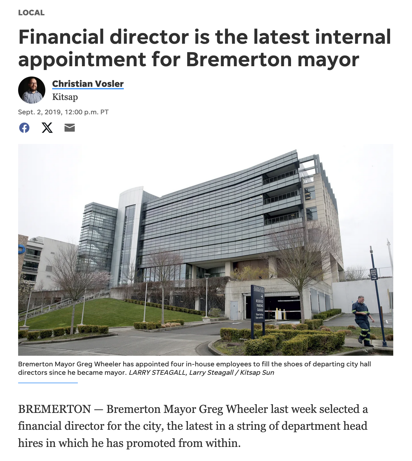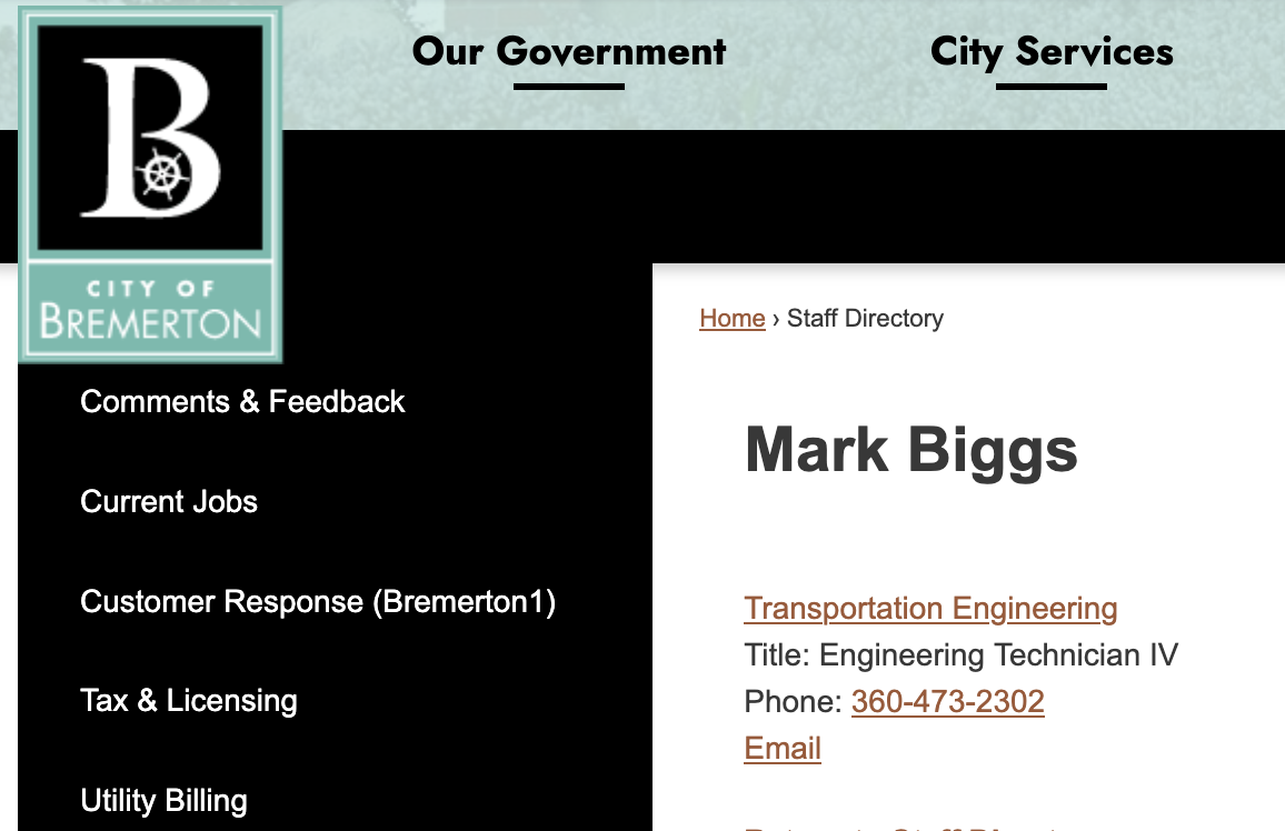 The Mayor’s campaign manager, Mark Biggs, is a city employee in Bremerton’s Public Works Department. That doesn’t seem right.